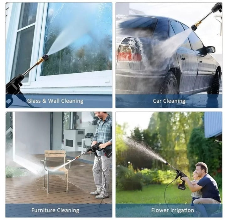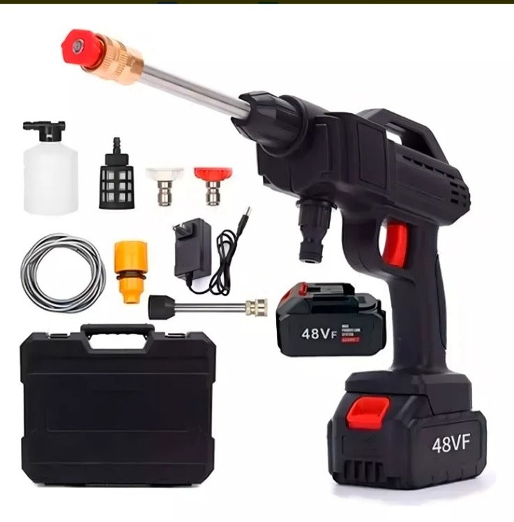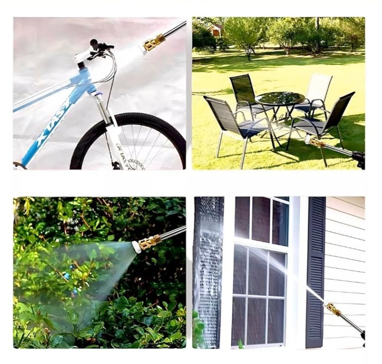 Fácil almacenamiento sin ocupar espacio ● Ideal para riego de jardines, riego agrícola, lavado de automóviles, limpieza del hogar, etc. ● Motor de núcleo de cobre puro Alta potencia, potencia fuerte, más duradera ● Ajuste del tipo de agua 2 Salida de agua + 1 caja de espuma boquilla, conversión gratuita de tres tipos de agua